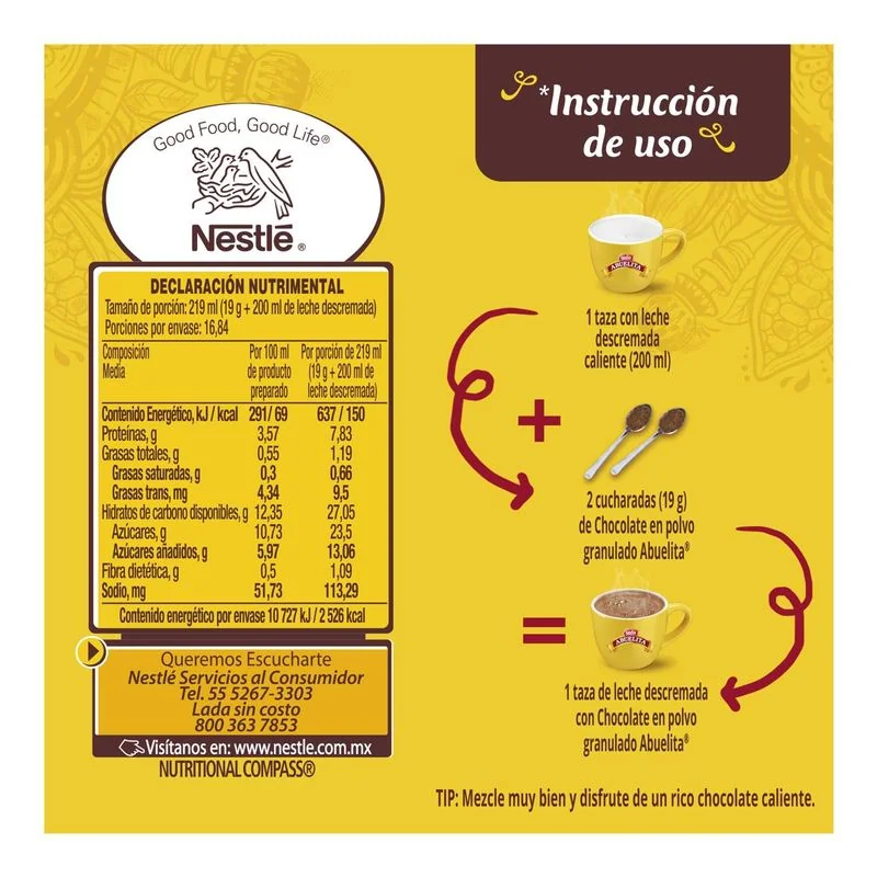 Chocolate Abuelita is a Mexican brand with more than 80 years of tradition that prevails in the most special moments of family unity. Abuelita Chocolate in granulated powder is the quick and easy presentation to prepare traditional hot chocolate.