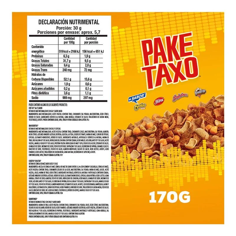 The Paketaxo Mixed Assorted Snacks offers a unique combination of your favorite snacks: Cheetos Bolitas, Fritos, Rancheritos and Sabritones. This incredible mix gives you a perfect snack option to share with friends or family.