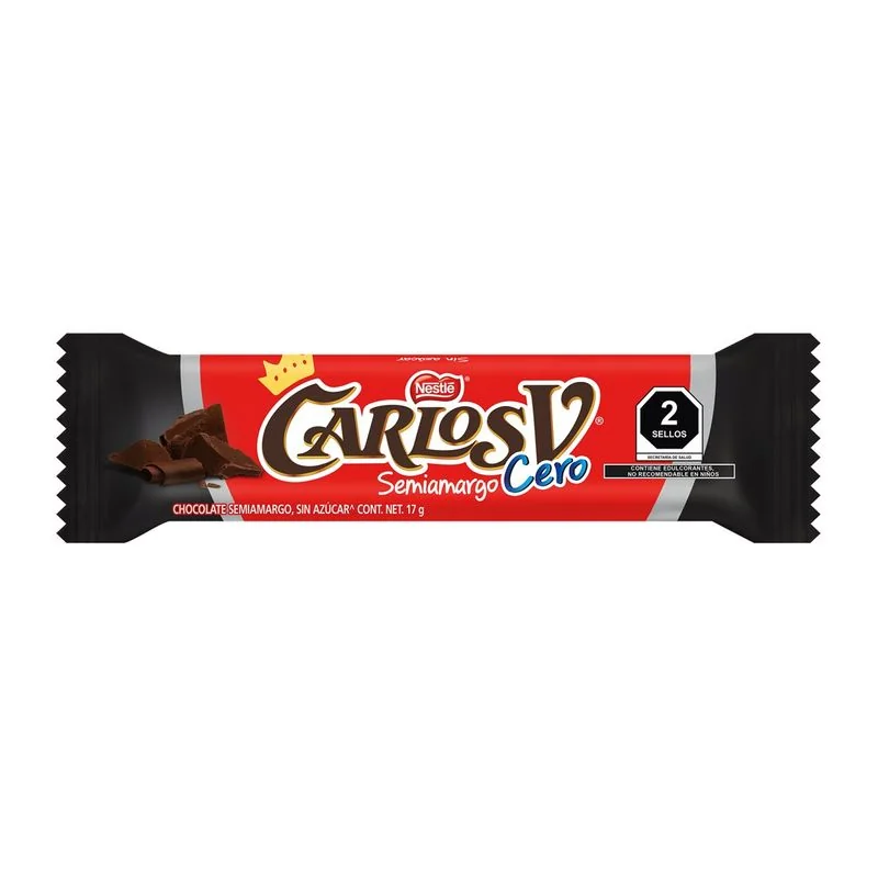 Carlos V Zero Semisweet Chocolate 17g (Chocolate Semiamargo Carlos V Cero 17g)