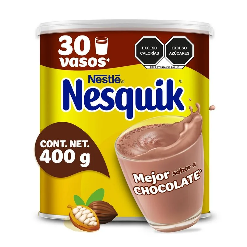 Nesquik With its unique flavor makes milk richer and more fun. It has a variety of delicious flavors fortified with iron, zinc and vitamins that your children will love, contributing to the adequate consumption of calcium and vitamin D. In a glass with skim milk (231 ml) add 2 tablespoons (13.8 g) of Nesquik chocolate flavor powdered food. The rich chocolate flavor you know and love comes from authentic, sustainably-produced ground cocoa