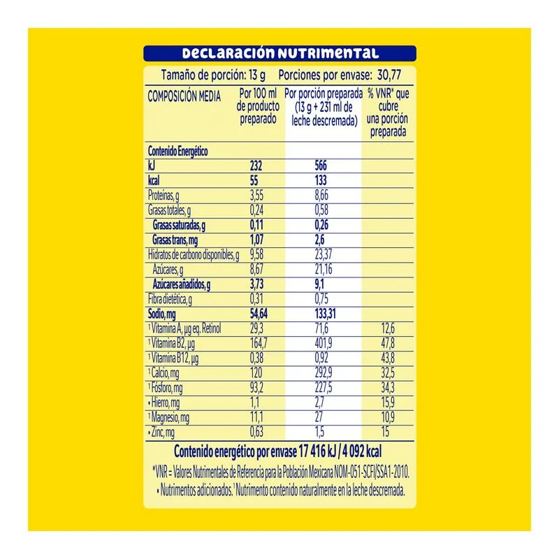 It contains iron, zinc and vitamins that complement the benefits of milk. YOUR CHILDREN’S FAVORITE FLAVOR