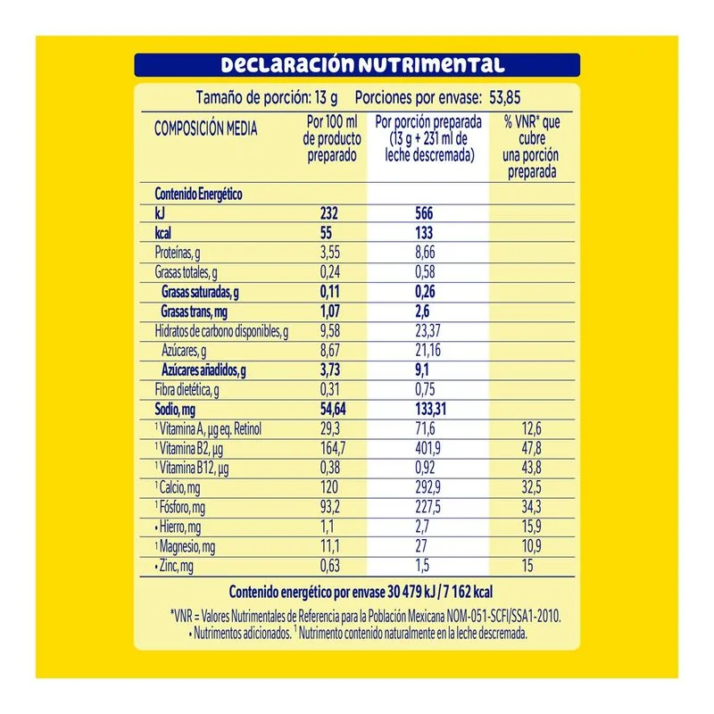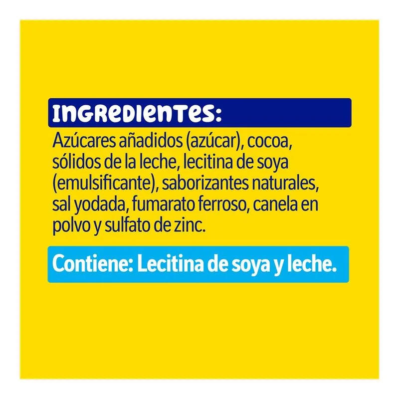 It contains iron, zinc and vitamins that complement the benefits of milk.