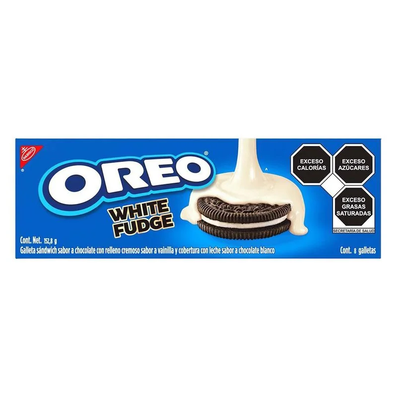 Oreo cookie with two crispy layers of chocolate cookie covered in white chocolate.