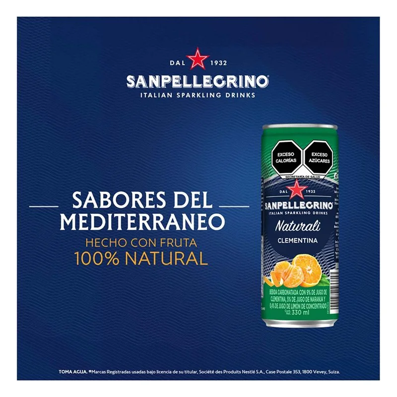 San Pellegrino Clementina surprises you with a delicious aroma of mandarin and orange that form a refreshing and intense flavor on your palate accentuated by the exquisite flavor of clementine.