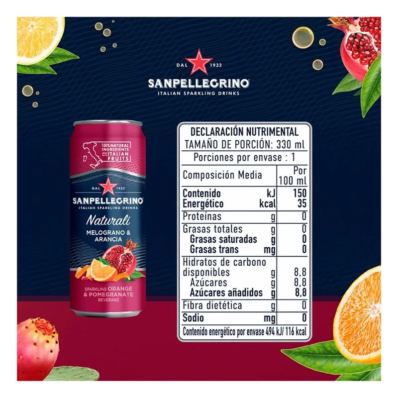 The bright reddish effervescence of San Pellegrino Melograno& Arancia is love at first sight. Made with orange and pomegranate juice, Melograno & Arancia features a gently squeezed orange juice flavor with the glamorous and exciting aroma of