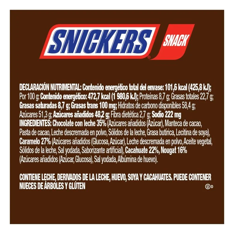 Chocolate Snickers Snack filled with caramel, peanut and nougat, 21.5 g