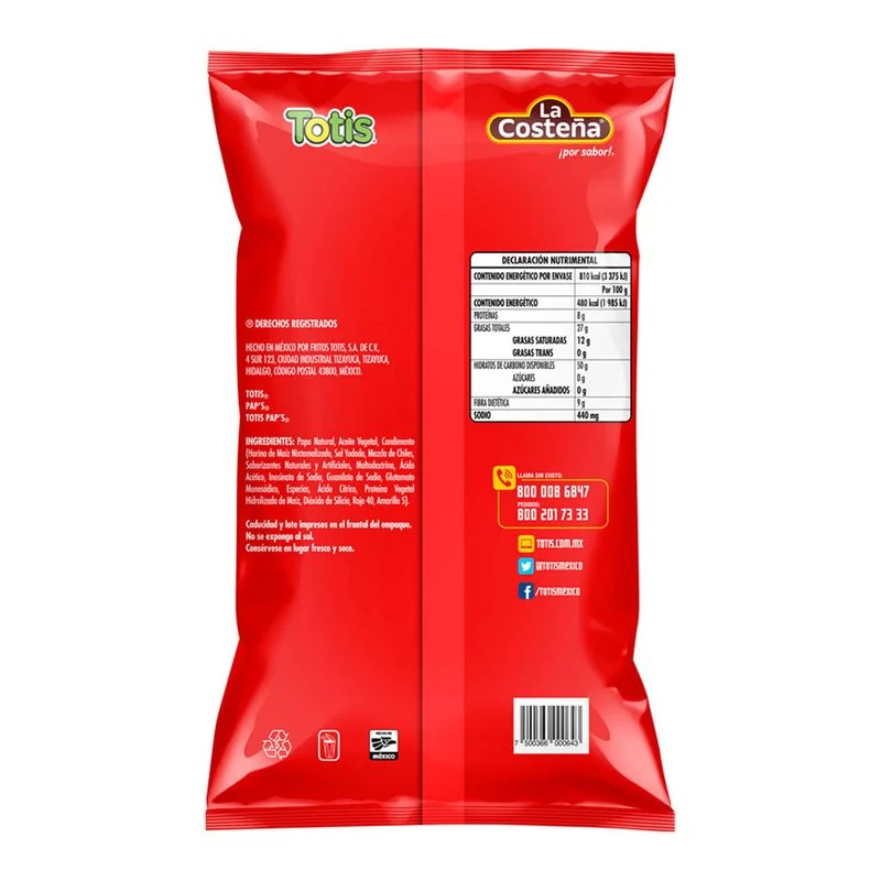 100% natural potato, washed, peeled, sliced, fried and seasoned with adobo flavor