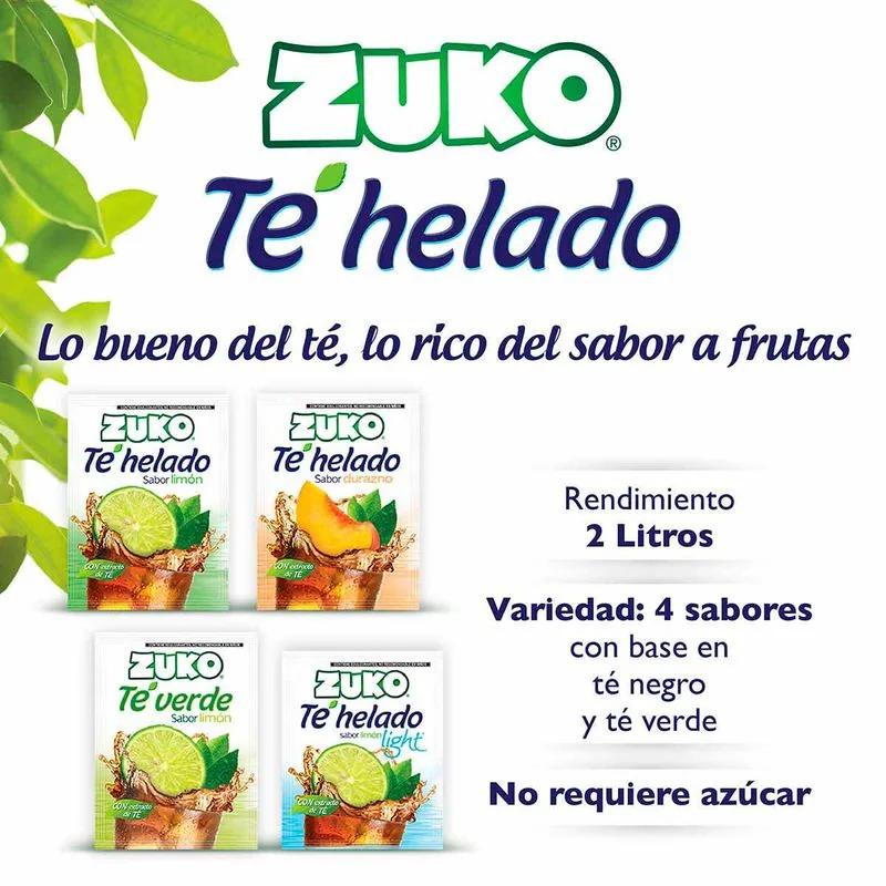 Zuko Iced Tea Light Black Tea Lemon Flavor Makes 2L (Saborizante Zuko Té Helado Light Té Negro Sabor Limón Rinde 2L)